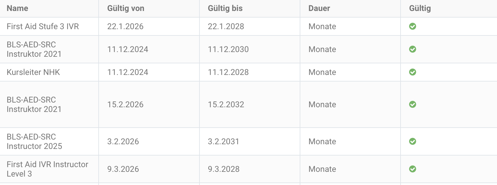 As a certified instructor for the First Aid Course (SGS-certified), I provide mandatory training for those applying for a Swiss Driving License. Additionally, I specialize in Basic Life Support (BLS) and Automated External Defibrillator (AED) training, certified by the Swiss Resuscitation Council (SRC). My expertise includes teaching generic instructor courses, and I actively contribute as a member of the SRC.